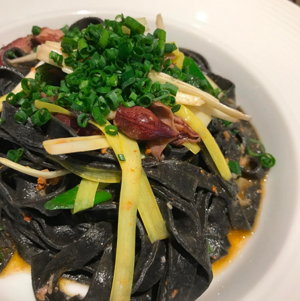 ホタルイカとイカスミのフィットチーネ